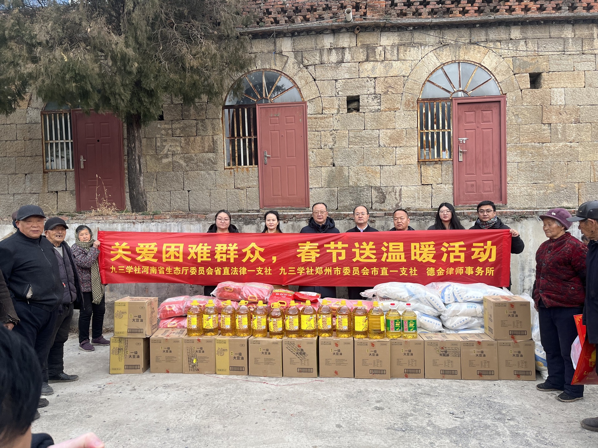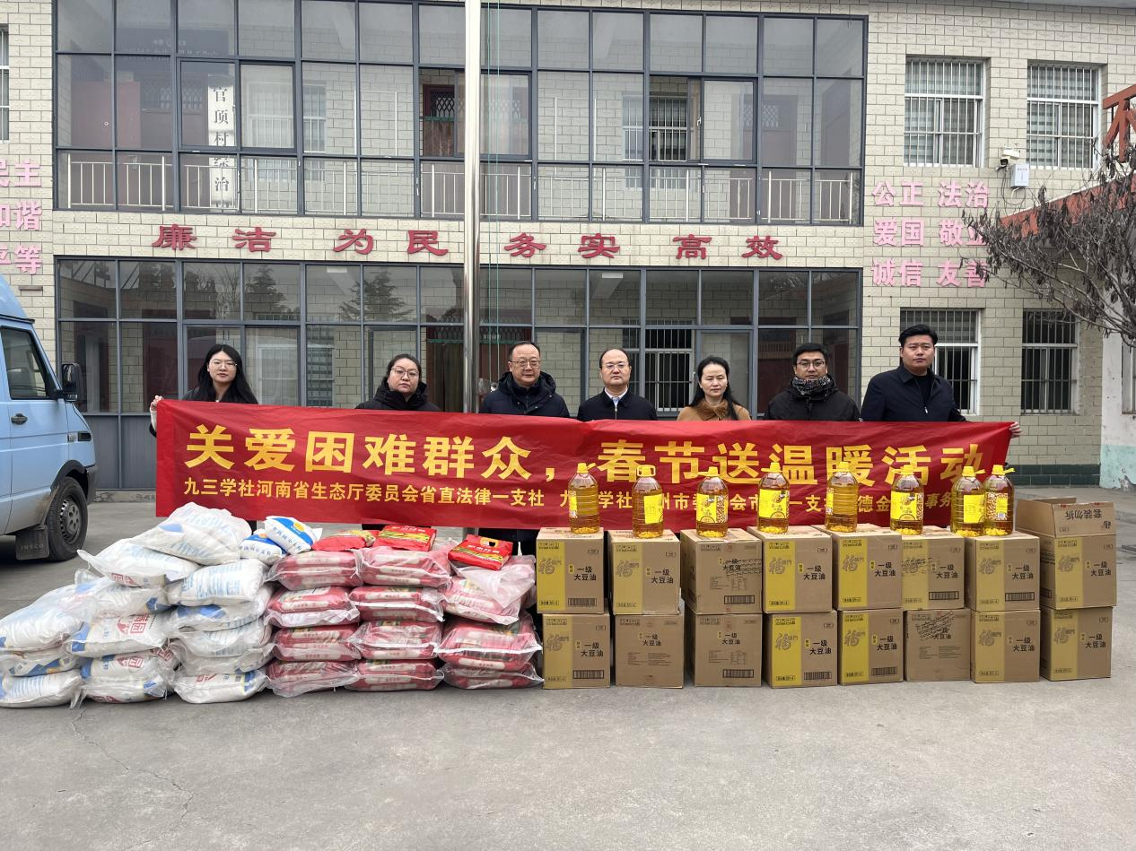 在新春佳节即将来临之际,农历腊月二十三前夕,九三学社河南省委员会法律专门委员会副主任、九三学社河南省直法律一支社主委、河南德金律师事务所主任刘宏元在九三学社郑州市委副主委、荥阳市政协副主席苟雷、郑州市市直一支社主委丁恒、荥阳市司法局环翠峪司法所所长陈军伟、环翠峪风景名胜区管理委员会党工委副书记副主任陈朝阳陪同下前往荥阳市陈庄村开展送温暖慰问活动。